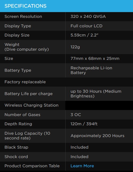 Enables you to upload dive logs using Bluetooth® wireless technology to Shearwater Cloud and free firmware updates