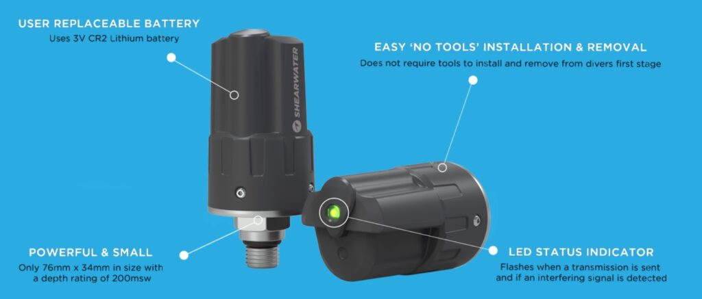 - Compatible with all air integrated Shearwater dive computers